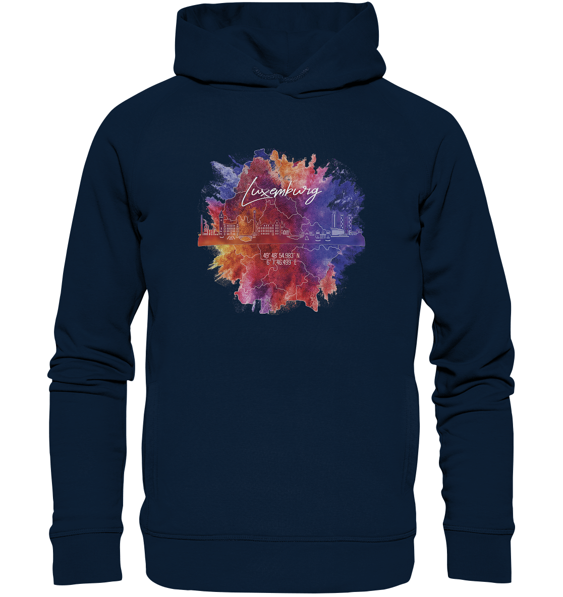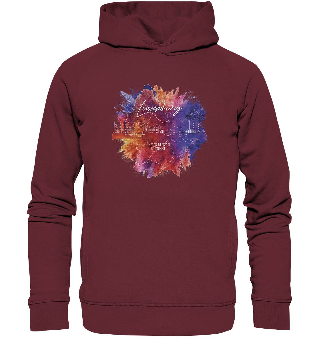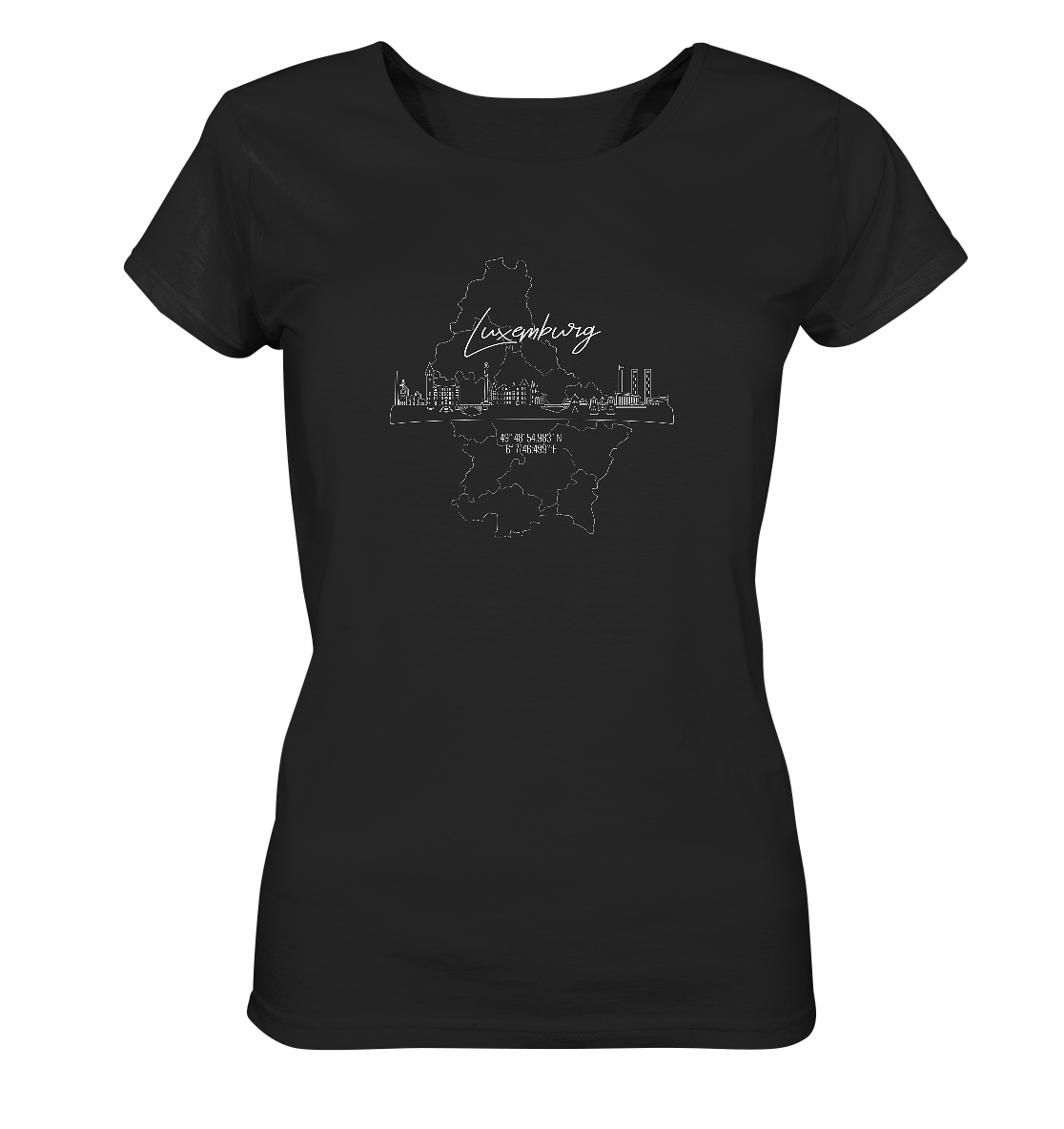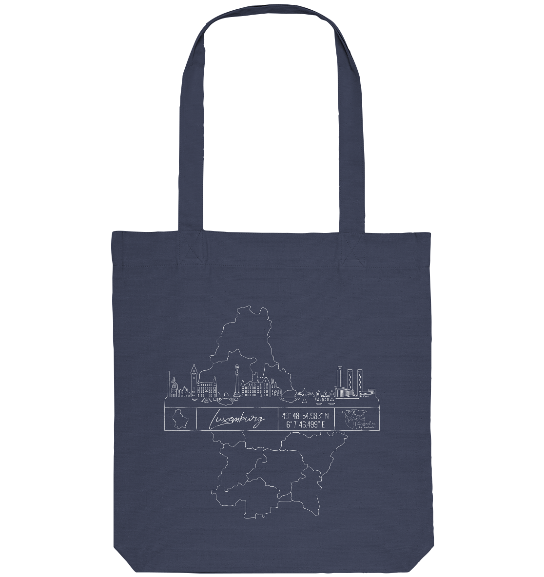 Die Skyline von Luxemburg auf deinem Shirt, Pullover, Hoodie oder deiner Tasche! Die Skyline von Luxemburg umfasst die schönsten und bekanntesten Gebäude des schönen Lands, von der Adolphe-Brücke bis zum Musée d’Art Moderne Grand-Duc Jean. Exklusiv für die Produkte von SkylineChic entworfen und designt. Das Skyline-Design wird durch weitere Details, wie die Karte der Stadtteile, den Namen und die Koordinaten erweitert.