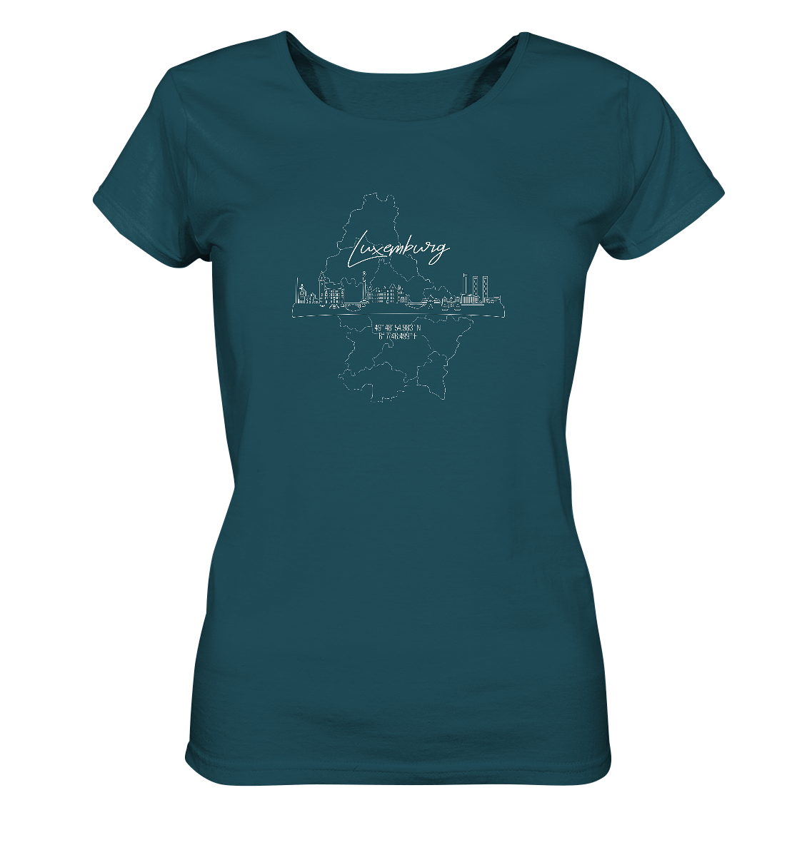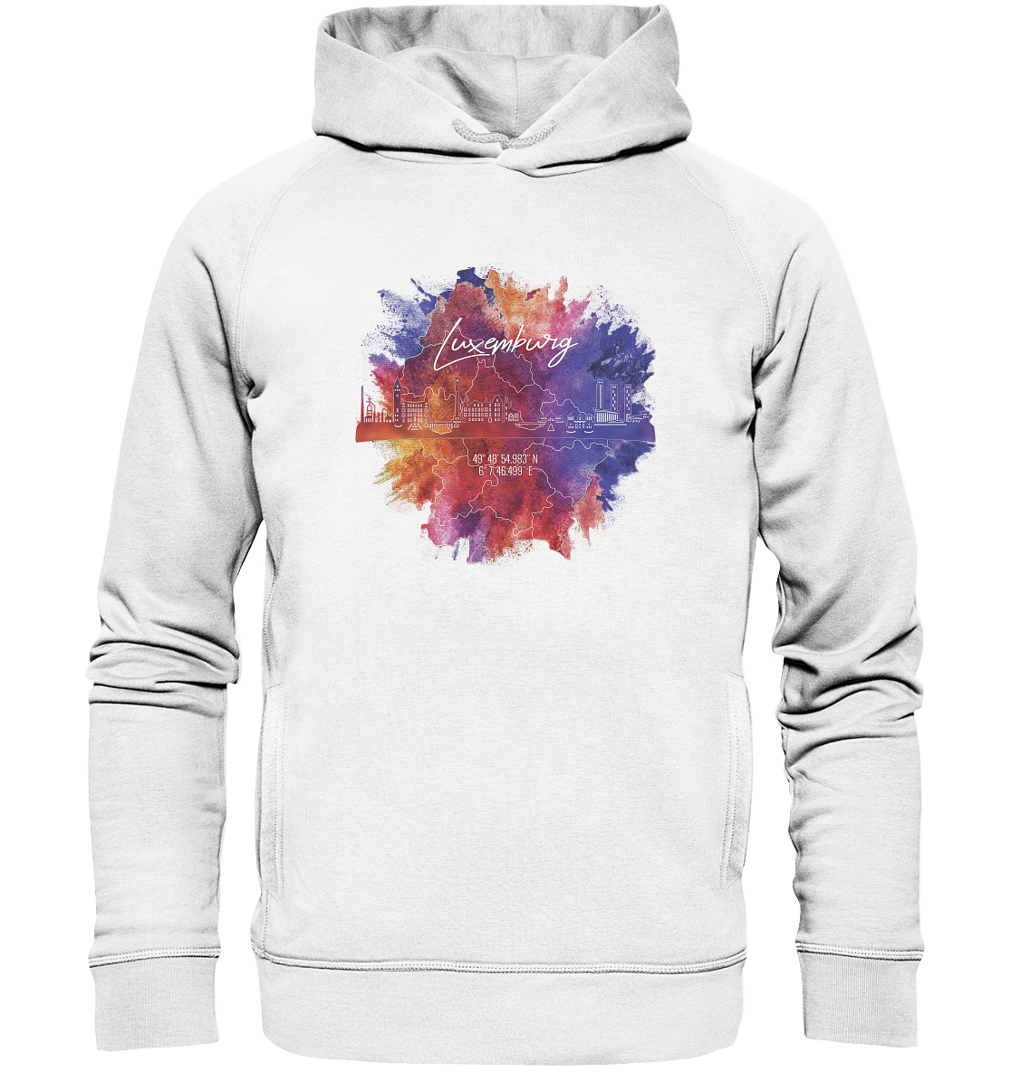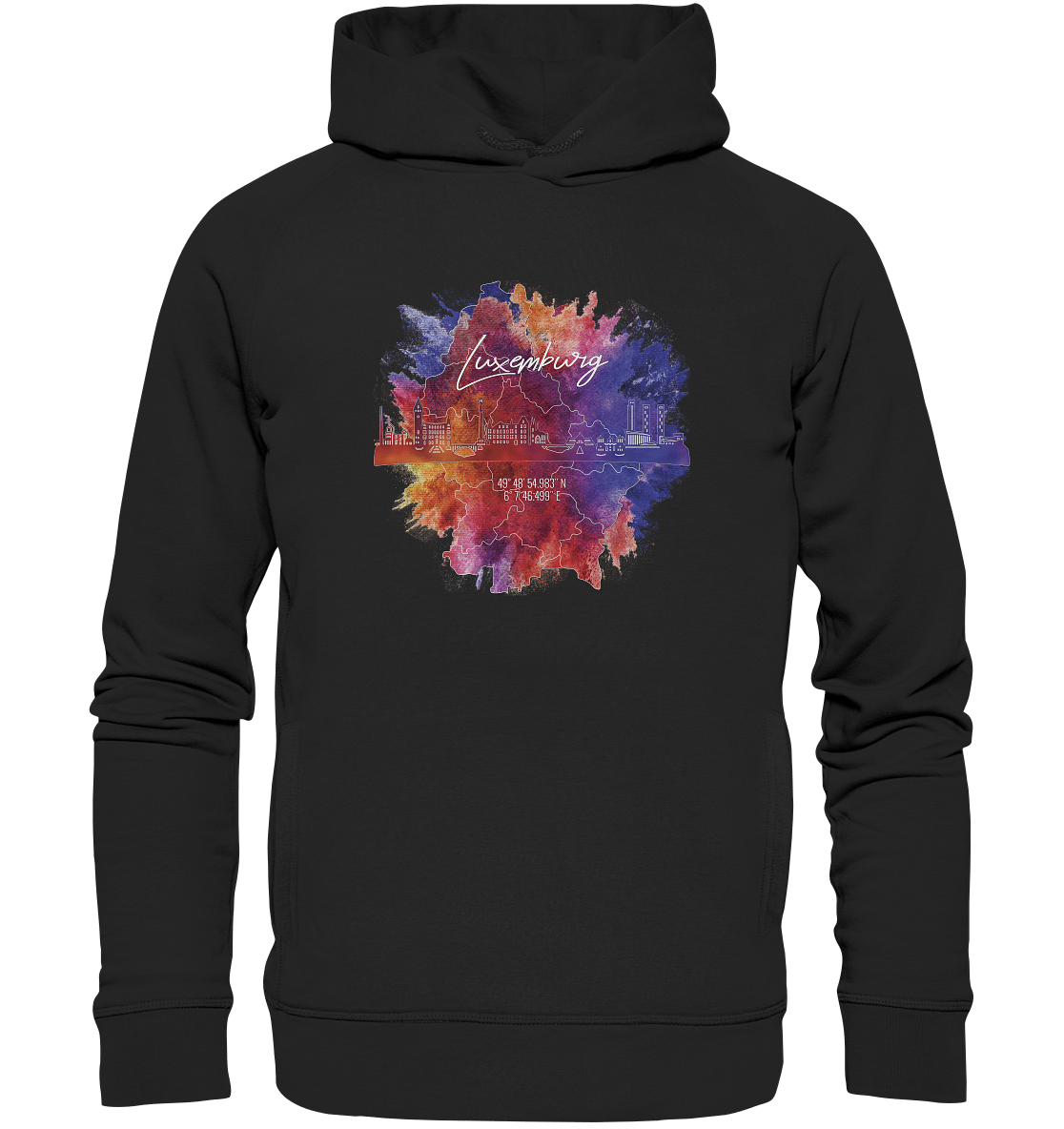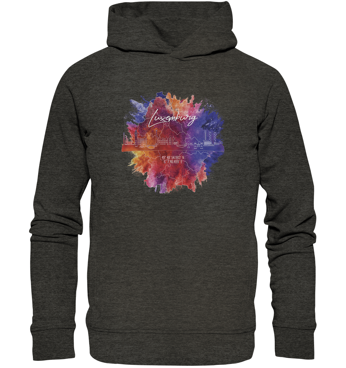 Die Skyline von Luxemburg auf deinem Shirt, Pullover, Hoodie oder deiner Tasche! Die Skyline von Luxemburg umfasst die schönsten und bekanntesten Gebäude des schönen Lands, von der Adolphe-Brücke bis zum Musée d’Art Moderne Grand-Duc Jean. Exklusiv für die Produkte von SkylineChic entworfen und designt. Das Skyline-Design wird durch weitere Details, wie die Karte der Stadtteile, den Namen und die Koordinaten erweitert.