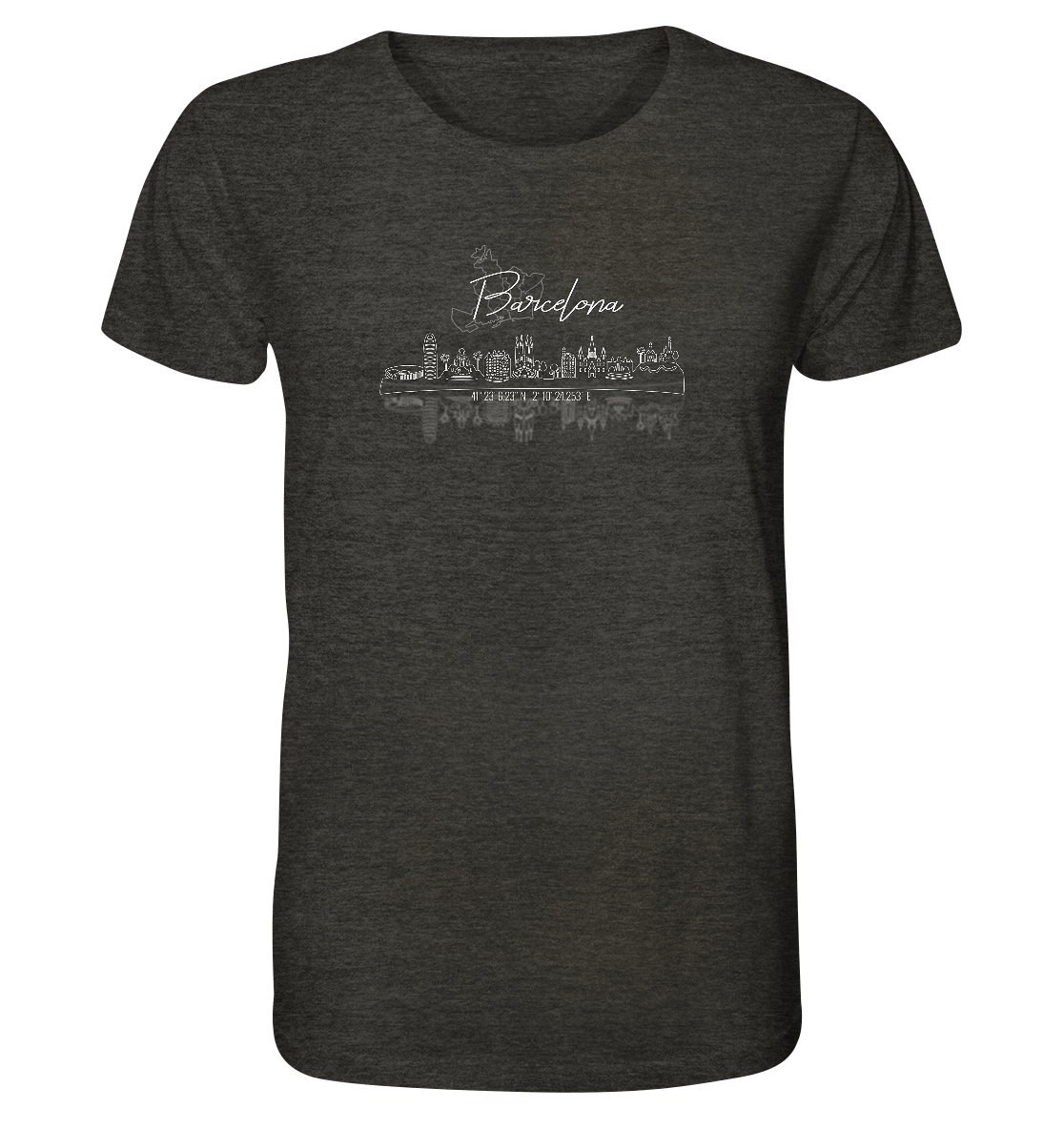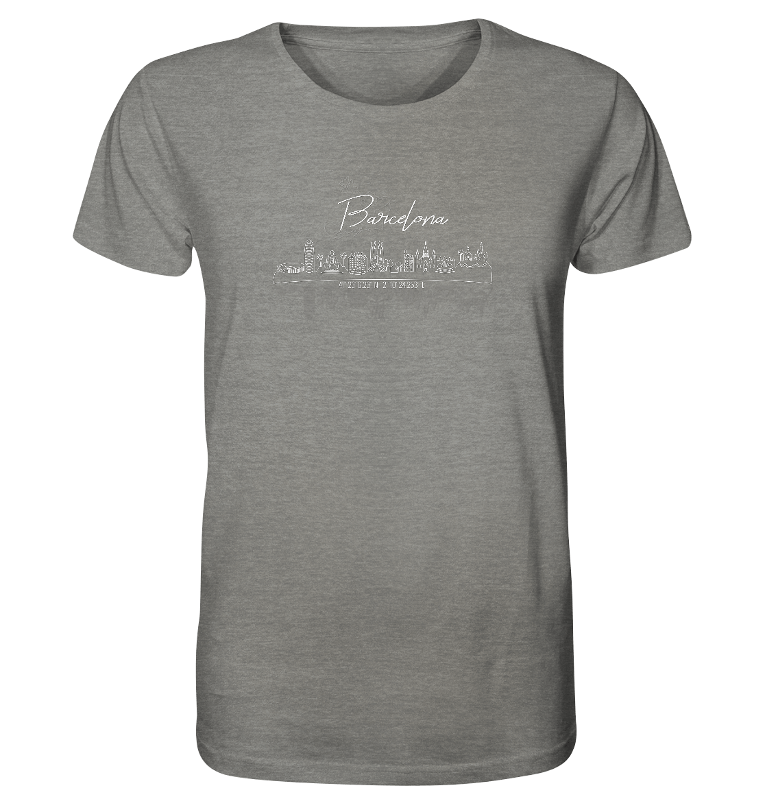 😍 Das Barcelona Skyline T Shirt (meliert) ist das Premium Shirt von SkylineChic aus 100% Bio-Baumwolle (ringgesponnen & gekämmt) mit der Skyline von Barcelona. Es ist in vielen verschiedenen Farben und Größen (S-XXXL) erhältlich. Die bequeme Passform, die zertifizierte Nachhaltigkeit, die hohe Qualität des Stoffes (155g/m²) – all das macht dieses T-Shirt nicht nur schön, sondern auch besonders hochwertig. Von der Stadt am Mittelmeer Barcelona bis zu den pulsierenden Orten zwischen Berlin und Panama lassen unsere Produkte Herzen höher schlagen und begeistern fast alle, die sie sehen.