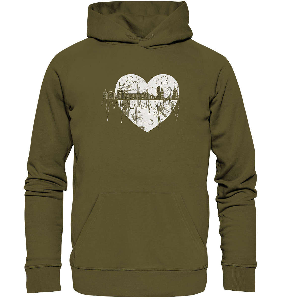 Über die "Heartbeat Line" von SkylineChic: Die "Heartbeat Line" wurde mit dem genauen Blick auf die Stelle designt, an der deine Lieblingsstadt oder dein Traumziel liegt: Dein Herz für großartige Städte, die besten Geheimtipps und besondere Lieblingsziele - der Herzschlag geht immer ein wenig nach oben, wenn du an die Skyline deiner Heimat oder die schönsten Erlebnisse deines Urlaubs denkst. Diese Emotionen wollten wir mit diesem Motiv einfangen, damit du sie immer auf deiner Brust tragen kannst. Das Design ist komplett in Weiß gehalten und rahmt sich dabei um das große Herz im Vintage-Design. Die Linie des Herzschlags setzt hier den Hintergrund der Städteskyline und untermalt dabei alle Höhepunkte, Sehenswürdigkeiten und Plätze, die jedem Besucher im Kopf bleiben. Der Name und die Umrisse der Stadt befinden sich im oberen Teil des Herzens und bilden damit die Überschrift der Silhouette der Stadt, Region oder des Landes. Durch das Design der "Heartbeat Line" wird auf den ersten Blick sichtbar, wofür dein Herz schlägt: Weltoffenheit, schöne Städte, wunderbare Reiseziele gepaart mit Individualität. In der Kombination mit den nachhaltigen und fair produzierten Shirts, Pullis, Sweatshirts und Beuteln von SkylineChic ergibt sich ein schönes Gesamtbild: Ein nachhaltiger Hingucker, der ausdrückt, wo du herkommst, wo du hinwillst und wofür du stehst.