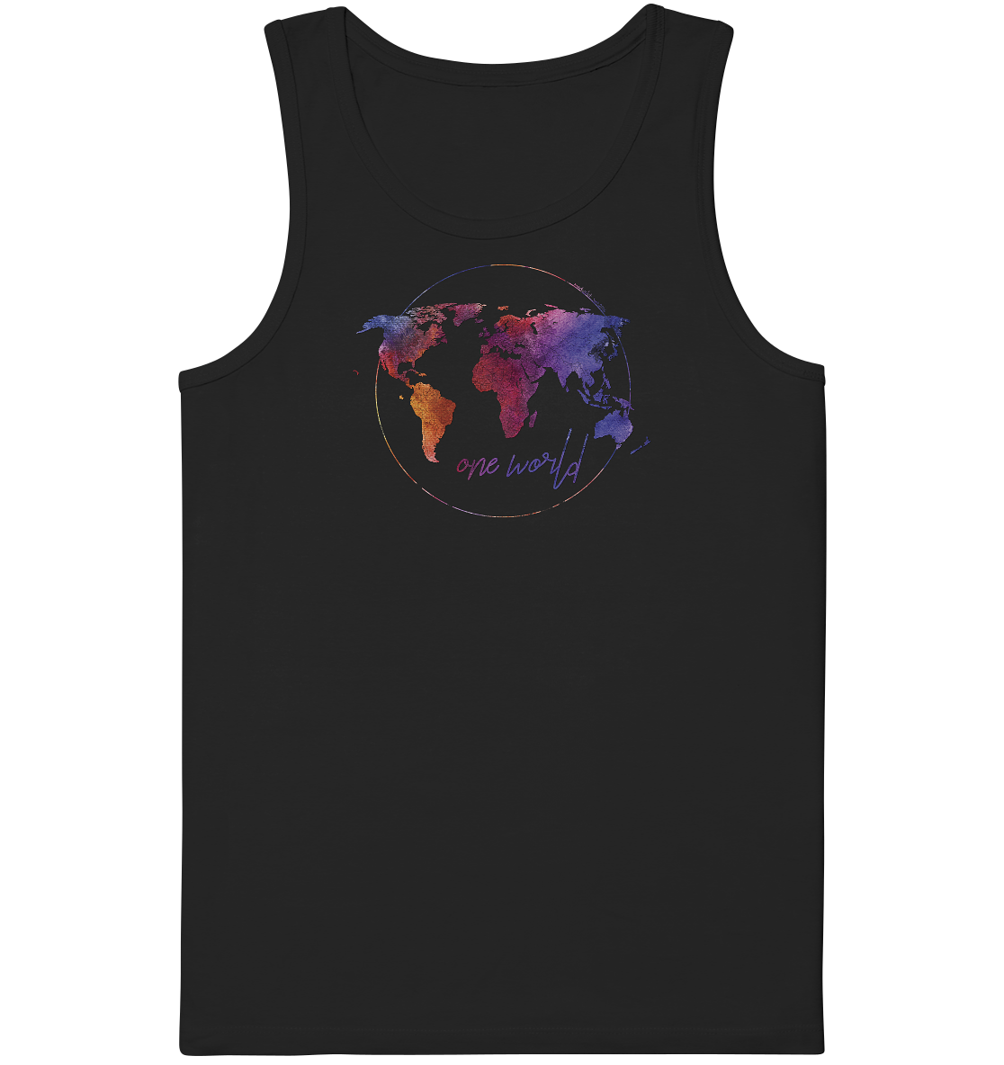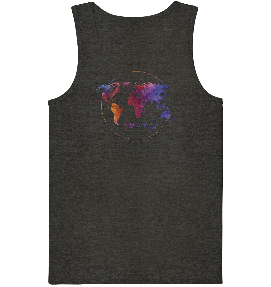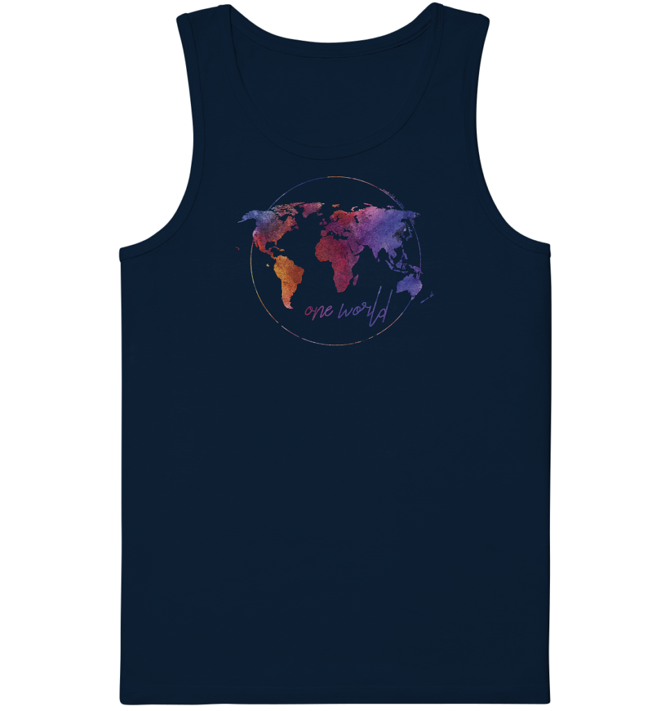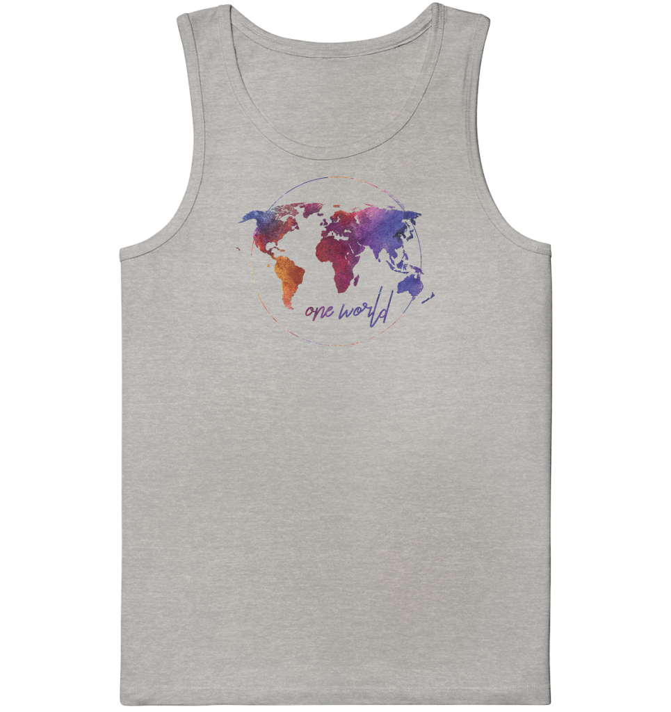 😍 Das World-Design Tank-Top ist das Premium Weltkarten-Motiv TankTop von SkylineChic aus 100% Bio-Baumwolle (ringgesponnen & gekämmt) mit dem Slogan "One World" unter der exklusiv gestalteten Weltkarte. Es ist in vielen verschiedenen Farben und Größen (S-XXXL) erhätlich und fasziniert durch die lebensfrohe Gestaltung und das langlebige Material. Die bequeme Passform, die zertifizierte Nachhaltigkeit, die hohe Qualität des Stoffes (155g/m²) – all das macht dieses Tank Top nicht nur schön, sondern auch besonders hochwertig. Vom wunderschönen Kanada bis zum Trubel der Städte zwischen Berlin und New York lassen unsere Produkte Herzen höher schlagen und begeistern fast alle, die sie sehen.
